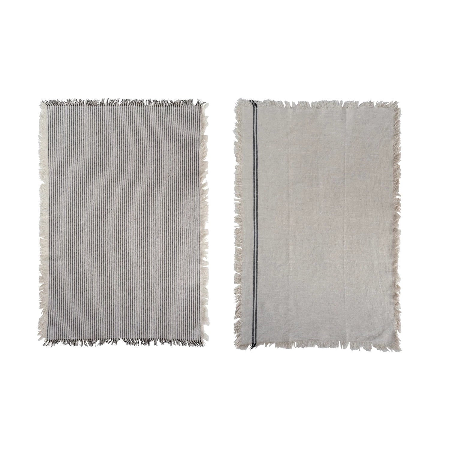 Cotton Tea Towel w/ Stripes & Fringe, Set of 2